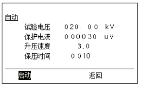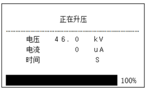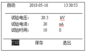 - 對于電纜試驗,設(shè)置好試驗電壓,過壓電流,耐壓時間,按確定,儀器自動進行升壓,保持,降壓。